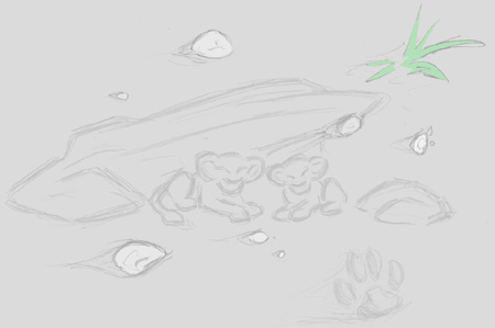 My mother was crying too as she groomed my fur. As I lay there between her front paws, basking in her warmth and security, I thought I'd never want to leave the protection of my parents again. My father stood up and paced deliberately a few steps up the promontory, then just stared out at the land, a severe expression on his face, seeming lost in thought. He let out a heavy sigh. "All that time we were worried about Kisasian attacking me or maybe one of the lionesses, but I never thought he'd attack my children." None of us spoke again for a long time.